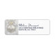 Rücksendeadressen-Aufkleber mit einem magischen Urlaubsdesign. Mit einem silbernen Weihnachtsball mit Schneeflocken dekoriert und mit einem hübschen Silberbogen fertig. Der Hintergrund ist eine silberne Lichtillustrierung mit eleganten Sternen verstreut.
