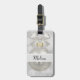 Personalisierte Gepäckmarke mit einem magischen Urlaubsstil. Mit einem silbernen Weihnachtsball mit Schneeflocken dekoriert und mit einem hübschen Silberbogen fertig. Der Hintergrund ist eine silberne Lichtillustrierung mit eleganten Sternen verstreut.