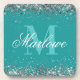 Eleganter Silver Glitzer Aquamarin Monogram Getränkeuntersetzer