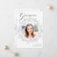 Eine elegante Abschluss-Ankündigungskarte mit einem Kranz aus silbernen (hellgrauen) Silhouetten, mit einem Foto und einer Nachricht auf der Rückseite.