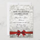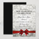 Eleganter Silvester Silver Bokeh Lights Red Bow Einladung