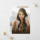 Ankündigung eines Abschlusses mit einem großen Foto und modernem Skriptüberlagern.