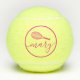 Personalisierte Tennisbälle mit einem rosa individuelle Name oder Text in einem femininen gürtlichen und modernen hübschen Drehbuch-Schriftart und einfaches Tennisschläger-Monogramm mit einem kreisrunden Rand. Jeder weibliche Tennisspieler würde den eleganten Look dieser modernen mit Monogramm Übungsbälle schätzen.