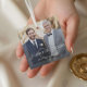 Dieses wunderschöne Ornament besticht durch ein volles Foto-Display, gepaart mit einer eleganten Schrift- und Serifentextkombination, die "Vater des Bräutigams" mit einem zarten Herzelement liest. Personalisieren Sie es mit Ihrem Hochzeitstag, um einen wirklich bedeutsamen Sake zu schaffen. Ein sanfter, subtiler Abfall am Ende des Fotos fügt eine anmutige, zeitlose Touch hinzu, die sich perfekt zum Ausstellen auf dem Ferienbaum oder als hochgeschätztes Memento eignet. Ideal, um dem Bräutigvater zu schenken, ist dieses Ornament eine herzliche Art, ihre Liebe, Führung und Unterstützung an Ihrem Hochzeitstag zu ehren. Design by ©Moodthology Papery