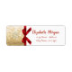 Adorable Weihnachten Schneeflocke und roter Bogen auf glänzenden goldglänzenden Bukahintergrund. Ein elegantes und raffiniertes Design.Costumize mit Ihrem Namen und Adresse Details.
