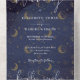 Diese einladende Hochzeitseinladung besticht durch elegante Typografie auf himmlischem Mond und Sternenhimmel. Die Einladung enthält eine perforierte RSVP-Karte mit Ihrem Hochzeitswebsite QR Code. Entwickelt von Thisisnotme©