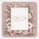 Umgeben Sie sich mit einer Welt der ländlichen Romantik und dem Charme der Eleganz mit diesem atemberaubend schönen Blumen-Dankeschön-Aufkleber. Das Design zeigt einen soliden, gedämpften staubigen rosa Hintergrund, der eine warme, elegante Leinwand bietet. Ein üppiger, realistischer Blumenstrauß in einer weichen, eleganten Farbpalette aus staubigem Rosa, zartem Rosa und Creme umrahmt elegant eine zentrale Fläche. Die Anordnung ist reich an Textur, mit detaillierten Chrysanthemen, zarten Anemonen und weichen Rosen, die alle mit getrockneten Botanicals und staubgrünem Laub verwoben sind. In der Mitte bietet ein knackiges, cremeweißes Rechteck mit Papierstruktur einen klassischen Raum für Ihre Nachricht. Diese Fläche ist von einem minimalistischen, dünnen doppelten goldenen Rahmen umgeben, der einen letzten Hauch von unterschätzter Eleganz hinzufügt. Diese Aufkleber sind perfekt für Unternehmen mit einer rustikalen, romantischen oder boho-chicen Ästhetik, wie z.B. Boutique-Blumenläden, die sich auf Trockenblumenarrangements spezialisieren, Hochzeitsplaner mit einem natürlichen Thema, Kunsthandwerker für Seifen, Brautmodenboutiquen oder Fine-Art-Fot