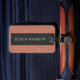 Reisen Sie in lux Stil mit diesem Design, das aussieht wie Rose Gold-Folie mit einem Lederschild "gestickt".