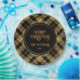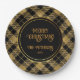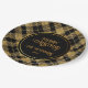 Eleganter Tartan Black Gold Glitzer Pappteller