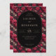 Dies ist ein Bild im gotischen Stil mit einer eleganten Hochzeitseinladung, umgeben von komplizierten roten Blumenmustern und Totenkopfmotiven. Die reichen, dunklen Farben schaffen eine ausgeklügelte und dennoch kantige Stimmung, perfekt für Paare, die den makabren Charme der gotischen Ästhetik lieben. Der schwarze ovale Rahmen mit goldenem Text fügt dem Design einen Hauch von Luxus und Formalität hinzu. Es ist ideal, um einen einzigartigen Ton für eine unvergessliche Feier zu setzen.
