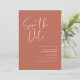 Eine moderne Typografie und eine trendige Terrakotta-, Ton- und Pfirsichfarbenpalette für Ihre Hochzeitsfeier: Wählen Sie diese einfache und elegante Hochzeitssuite. Vollständig anpassbar: Sie können sowohl den Hintergrund als auch die Textfarbe beliebig ändern.