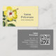 Vintage Abbildung eines gelben Hibiskus auf grauem Hintergrund, Mischung aus Moderne und Retro für Blume-Designer, Florist, Schönheitssalon, Parfüm, Kosmetikgeschäft, Reise-Agent, Massage, Physiotherapeut, Hochzeitsplaner, Bio Essen, Strandcafé, Shop, Hawaii oder tropische Inselprodukte, realer Anwesen-Agent, Gärtner, Naturliebhaber leicht editieren und personalisiert, mit 5 Kontaktinfo und QR-Code oder Logo. Hawaiis offizielle Staat-Blume ist der gelbe Hibiskus. Sie sind das Symbol für Positivität, Freude, Fröhlichkeit, viel Glück und Wohlstand. Sie können als persönliches "viel Glück" Geschenk behalten oder jemandem gegeben werden, der etwas Positives in seinem Leben braucht.