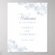 Elegante Vintage florale botanische Dusty Blue Wedding Willkommenszeichen. Traditionelles klassisches Begrüßungszeichen