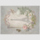 "Eleganter Vintager Eiffelturm Pariser Blumengarten dekoupage Muster schweres Gewebe für Möbeldekoration oder Geschenkcreme." Weich strukturierter Damast-Hintergrund mit Vintagem weißem Queen Anne's Lace, Gänseblümchen und Rose in Rosa. Botanische Motten und Schmetterlinge sind mit einer Vintagen Eiffelturmbildkamera in der Mitte verbunden. Schrift-Typografie-Ephemerien und Werbung enden aus dem Design. Grafisches Design von Audrey Jeanne Roberts, einer international anerkannten Künstlerin und Designerin. Urheberrecht.