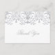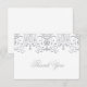 Elegant Vintag inspirierte Hochzeitskarten mit Notizkarten zeichnen sich durch ein verziertes Dekorationstil aus, das durch einen silbergrauen Glanz aus metallischem Champagner und einen personalisierten "Dankeschön"-Text ergänzt wird. Format der Flachkarte Weißer Hintergrund kann angepasst werden.