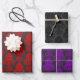 Ein Set von eleganten, Vintagen Viktorianischen antiken Goth Damask Designs, schwarz, rot und lila.