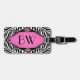 Dieser einzigartige, elegante Gepäckanhänger kennzeichnet eine KunstDeko Diamantform auf der Front in Schwarzem, im Weiß und im Rosa. Er lässt einen schwarzen Blathintergrund machen, um wie Zebradruck und -raum nach Ihnen zu suchen, zum Ihres Monogramms zu addieren. Die Rückseite hat einen größeren rechteckigen Entwurf und einen Raum, damit Sie Ihren Namen, Adresse und Telefonnummer addieren. Dieses würde einen stilvollen Umbau für jedermann machen, das etwas nach einem Retro Blick der Weinlese sucht.