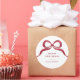 Dieser Feiertagsaufkleber zeigt einen roten Bogen, der mit Wasserfarben gemalt wurde, und "Frohe Weihnachten" in eleganter Typografie.