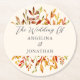 Schöne, kühne Aquarell-Herbstlaube schmücken oben und unter Ihren Namen auf diesem boho Herbst Hochzeitszeitung Untersetzer. Die botanischen Früchte, die von oben und unten aus dem cremefarbenen Dekor hervorgehen, sind in prächtigen Rot-, Orange- und Brauntönen gehalten.