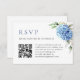 Eleganter Watercolor Blue Hydrangea QR Code Weddin RSVP Karte