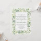 Eleganter Watercolor Foliage Spritzer Hochzeitsinspektion mit einem wunderschönen, grünen Rahmen auf einem Imitat texturierten Hintergrund mit subtilen Spritzern. Traditionelle Formulierung mit einem leicht modernen Schriftart. Die abgebildete Aufnahme ist perfekt, wenn beide Sets von Eltern die Hochzeit ausrichten, aber natürlich kann jeder Wortlaut an Ihre spezifischen Bedürfnisse angepasst werden.
