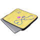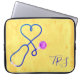 Sehr gelbes Aquarellbild mit einem Stethoskop, das wie ein Herz geformt ist. Krankenschwestern, Ärzte und Fachleute aus der Medizinbranche werden diese Computerärmel Liebe geben. Monogramm mit Initialen oder Titel.