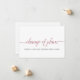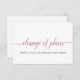 Manchmal müssen Hochzeiten verschoben werden. Frag deinen Gästen, ihr Hochzeitstag mit diesem schlicht eleganten Design zu ändern, das in der modernen Rose die Worte "Planänderung" in goldfarbener Schriftzeichen vorne mit der Botschaft und den Namen auf der Rückseite enthält.