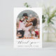 Moderne Hochzeitskarte mit Ihrem Foto in einem Bogen-Bilderrahmen, "danke" in einem eleganten Kalligrafieschrift und Ihren Namen und Hochzeitstag in einfacher Typografie. Fügen Sie auf der Rückseite ein zusätzliches Foto hinzu, personalisieren Sie Ihre Dankeschön-Nachricht und fügen Sie Ihre Namen in ein signaturähnliches Skript ein.
