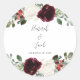 Diese eleganten Weihnachtsaufkleber sind perfekt für Hochzeitsempfang. Coordinierende Aufkleber ergänzen Ihren Hochzeitsempfang, Probe Dinner oder Brautparty. Das Design ist mit wunderschönen, weiß und bordeauxfarbenen Blumen mit Kiefer, Heilige Beere und Eukalyptusgrün gestaltet. Dies ist ein perfektes Farbschema für eine Winterhochzeit. Machen Sie sich diesen Aufkleber mit Ihren Namen und Ihrem Hochzeitsdatum.