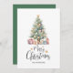 Mit dieser personalisierten Weihnachtskarte, die einen zarten Weihnachtsbaum in Aquarellfarbe und wunderschön verpackte Geschenke enthält, machen Sie Ihren Urlaub besonders. Die elegante "Frohe Weihnachten"-Botschaft wird ergänzt durch die Möglichkeit, Ihren Namen oder Familiennamen hinzuzufügen und so eine warme und sinnvolle Touch zu schaffen.