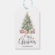 Fügen Sie Ihren Urlaubsgeschenke eine persönliche Touch mit diesem eleganten "Frohen Weihnachten"-Geschenktag mit einem eleganten Weihnachtsbaum in Aquarellfarbe und verpackten Geschenken hinzu. Passen Sie Ihre Wünsche an, indem Sie einen persönlichen Gruß und Ihren Familiennamen hinzufügen, um eine durchdachte und stilvolle Oberfläche zu erhalten. Ideal für Familiengeschenke, Firmengeschenke oder festliche Gastgeschenke.