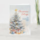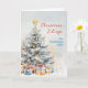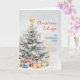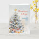 Ein eleganter Weihnachtsbaum schmückt diese hübsche gefaltete Urlaubskarte. Hübsche Goldbaubles markieren die schneebedeckte Kiefer und ein heller Stern ist der Oberteil dieses Vintagen Aquarelldesigns. Geschenke und Pakete in hübschen, passenden Farben sind rund um die Baumbasis. Der Gruß auf der Vorderseite der Karte ist "Weihnachtstidings", aber Sie können das zu einem anderen saisonalen Gruß Ihrer Wahl, wenn Sie bevorzugen. Im Inneren, auch in rot und blau Typografie, sind beispielhafte Gefühle guter Dinge und "von" Namen. Stellen Sie sicher, dass Sie diese in Ihre Auswahl ändern, sowie den Familiennamen und das Datum auf der Vorderseite.