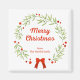 Genießen Sie die Schönheit der Saison mit einem eleganten "Fröhlichen Weihnachten" in rotem Text, gerahmt von einem anmutigen Kranz und verstreuten roten Sternen auf einem knusprigen weißen Hintergrund. Dieses raffinierte Design spiegelt den Festgeist perfekt wider und verleiht Ihren Feierlichkeiten eine charmante Touch!