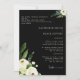 Elegante Schwarz-weiße Blumen Hochzeit Einladung. Schwarzer und cremiger Hintergrund. Beide Eltern haben aufgelistet. Einfaches Skript. Kontaktieren Sie Designer für Änderungen an diesem Design (Farbe, Eltern, Anzahl der Veranstaltungsorte, etc.). Hochzeit in der Kirche. 2 Veranstaltungsorte.