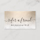 Stilvolles Makeup Künstler Referenzkartendesign mit Farbverlauf Imitat Kupfergold und weißem Marmor Textur und eleganten Kalligraphie Schriftart.