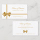 Eine elegante weiße Visitenkarte mit einem goldfarbenen Bogen und einem Streifen, gekreuzt im Stil eines geschenkten Packages. Fügen Sie zum Personalisieren den Namen Ihres Unternehmens und Ihres Beruf mit den Vorlagen in der Produktseite hinzu.