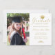 Schicken Sie Ihrer Familie und Ihren Freunden eine einzigartige personalisierte Foto Abschluss-Karte mit Ihrem individuellen Foto auf den links und auf der rechten Seite ein Imitat goldene Grade-Kappe mit dem Wort "Graduate", Klasse/Jahr, Name und andere Zeremonie Details in formalen Imitate Gold-Script-Kalligraphie, um auf einem einfachen weißen Hintergrund personalisieren. Entworfen von Susan Coffey.