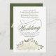 Diese wunderschöne Hochzeitseinladung mit einem hübschen, handgemalten Aquarellbouquet aus Rose, Blüten, Eukalyptus-Blätter und Grünpflanzen in Elfenbein-, Weiß- und Cremetönen. Das Design verfügt über ein extravagantes Kalligraphieskript mit einem langen, lockigen Schwanz, was es sowohl modern als auch klassisch macht. Elegante, raffinierte und schicke Art und Weise, Ihre Freunde und Familie zu einem besonderen Tag einzuladen. Die Rückseite der Karte ist eine tiefgrüne Salbei- oder Olivgrün-Farbe mit QR-Code und Platz, um Ihre Gäste zu Ihrer Website für mehr Informationen und zu UAWG.