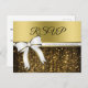 Diese wunderschönen Hochzeitskarten zeichnen sich durch ein weißes und goldenes Band aus und verbrennen die goldene Imitat-Folie oben von den goldenen Buh-Glitzern am unteren Rand. Fügen Sie eine Einladung mit ein, damit Ihre Gäste leichter antworten können. Auf der Rückseite der Postkarte finden Sie einen anpassbaren Text, der den Namen des Gastes, die Antwort, die Anzahl der Teilnehmer und die Wahl des Essens, sowie Ihre Rücksendeadresse und die optionale URL der Hochzeitsstelle angibt. Der gesamte Text ist vollständig anpassbar.
