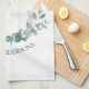 Dieses stilvolle Küchentuch aus Erntedank ist mit einem weißen Kürbis und Eukalyptus in sanften Grüntönen dekoriert. Es steht "Give Danke" in stylischer Schrift. Einfach anpassbar. Macht ein großartiges Geschenk für die Gastgeberin. Original Wasserfarbe © Michele Davies.