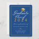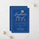 Mit dieser eleganten, individuellen 2023 Graduiertenankarte kündigen Sie Ihren Uni-Abschluss stilvoll an. Dieses formale Typografie-Design enthält die Worte Graduate Class of 20XX mit Ihrem Abschluss, Namen, Schule und Datum zu personalisieren in Gold-und Weiß-Skript durch ein Imitat Gold Graduate Cap und in Gold auf einem königsblauen Hintergrund gerahmt. Die Rückseite der Karte ist königsblau. Entworfen von Susan Coffey.