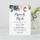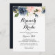 Dieses elegante, im Winter florale Brunch mit Brautdusche lädt zu einem modernen Polterabend ein. Das Design ist in dunkelblau, blau, blau, navy, rosa, rot, goldgelb und grün, Blume gehalten und in eleganten Bouquets untergebracht.
