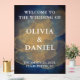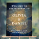 Dieses elegante mattierte Acryl-Schild zeichnet sich durch einen tiefen marinen Hintergrund und Imitate goldene Kalligraphie aus. Eine perfekte Wahl für Hochzeitsfeiern im Winter.