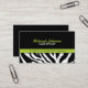 Limone grüne und schwarze stilvolle Geschäftskarten für irgendeine Art Geschäft. Einen Schwarzweiss-Zebra kennzeichnend, stripe Muster mit Pinkakzenten.
