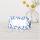 Elegante Zickzack Platzkarten in Blau und Weiß für Ihren Hochzeitstisch. Die blaue Hintergrundfarbe ist anpassbar.