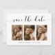 Wählen Sie einfach für Ihre Hochzeit mit diesem eleganten, modernen Schwarz-Weiß-Design. Save the Date: Teilen Sie die Freude Ihrer Liebe und neuen Verlobung mit dieser personalisierten 3 Foto Streifen Save the Date Karte.