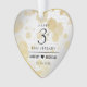 Feiern Sie mit diesem Gedenkschmuck den 3. Geburtstag der Lederhochzeit! Elegante, schwarze Schrift mit goldverstaubter sechseckiger Konfetti auf einem luxuriösen, weißen Lederhintergrund, umgeben von einer stilisierten Kontur eines Herzens in gedämpfter Goldfolie, verleihen diesem besondere Anlass und Meilenstein eine unvergessliche Touch. Passen Sie sich mit den Namen des Paares und dem Hochzeitstermin an. Umkehrung zeigt identisches Design. Design © W.H. Sim. Weitere Informationen unter zazzle.com/expressionsoccasions