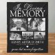 Memorial Keepake Fleece Decke mit 5 Bildern von Ihrem verlorenen Lieben, den Text "in liebevoller Erinnerung", ihren Namen, Geburts-/Sterbedatum, ein weißes Herz und das Erinnerungsdenken Sprichwort "weg, aber nie vergessen".