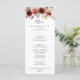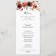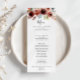 Diese elegante Karte für das Abendessen im Frühling ist perfekt für eine einfache Hochzeit. Die Einrichtung besteht aus rosa, rot, blau und bordeauxfarbenen Blume, die mit grünem Blattwerk verziert sind. Dieses Menü kann für Hochzeitsempfang, Probe Dinner, Brautparty oder jede Veranstaltung verwendet werden.
