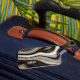 Elegantes abstraktes Logogepäck aus schwarz und go Gepäckanhänger